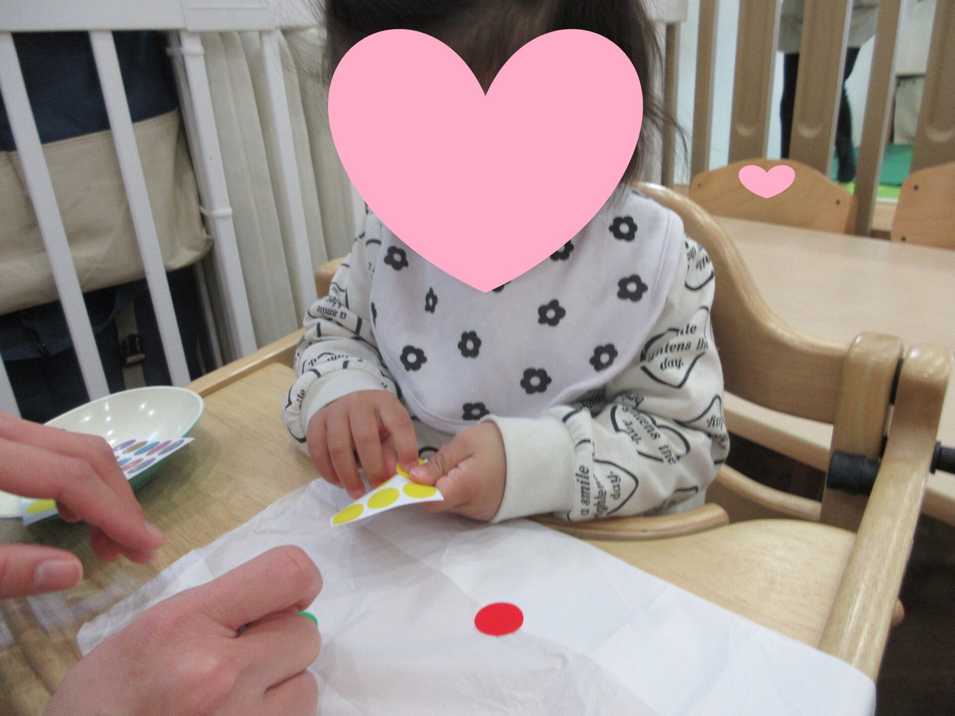 可愛らしい手でペタペタと上手に貼れていますね✨