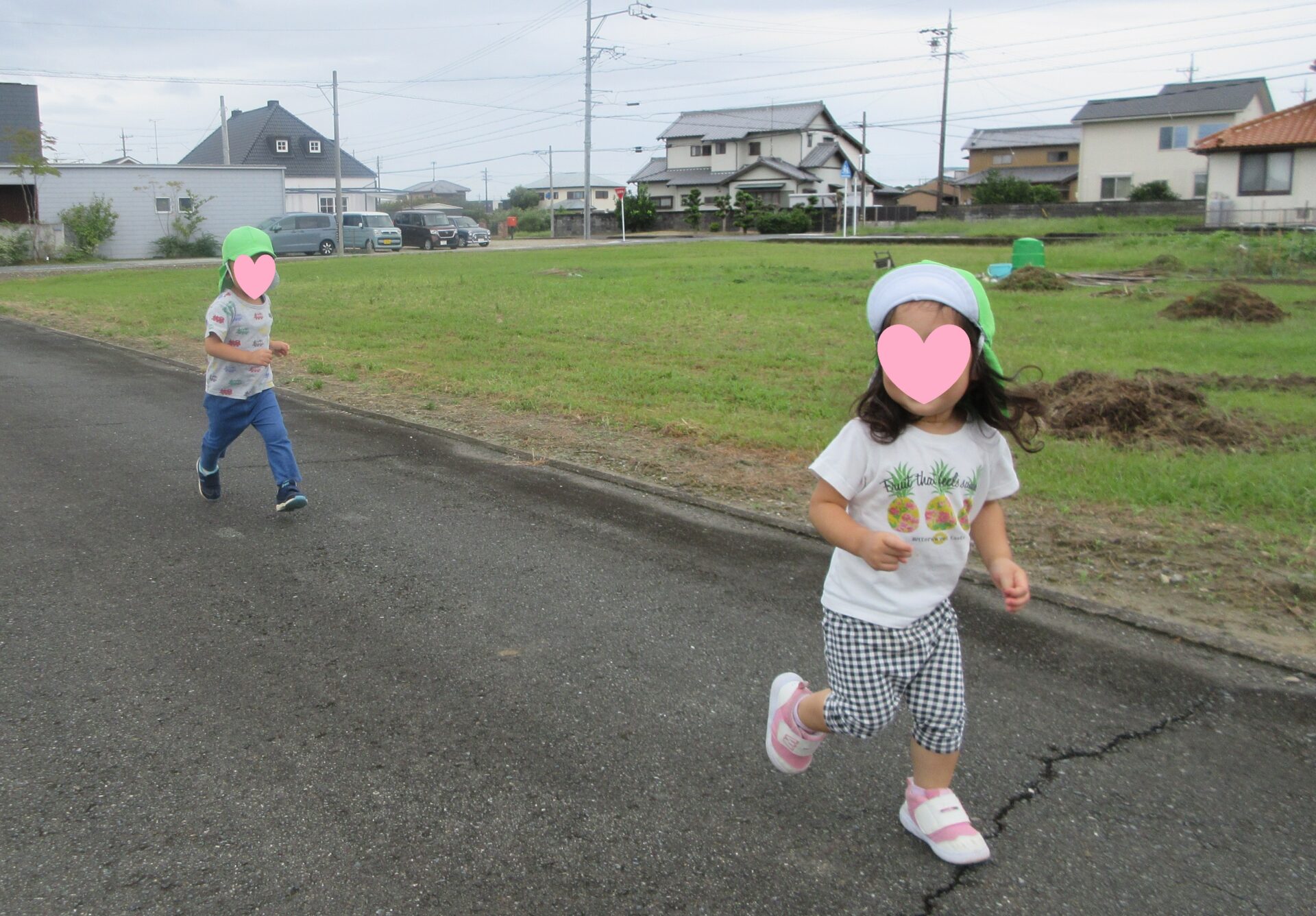 涼しい風を感じながらよーいドン!で走ったり、先生と手をつないで歩く姿がとても微笑ましかったです。
