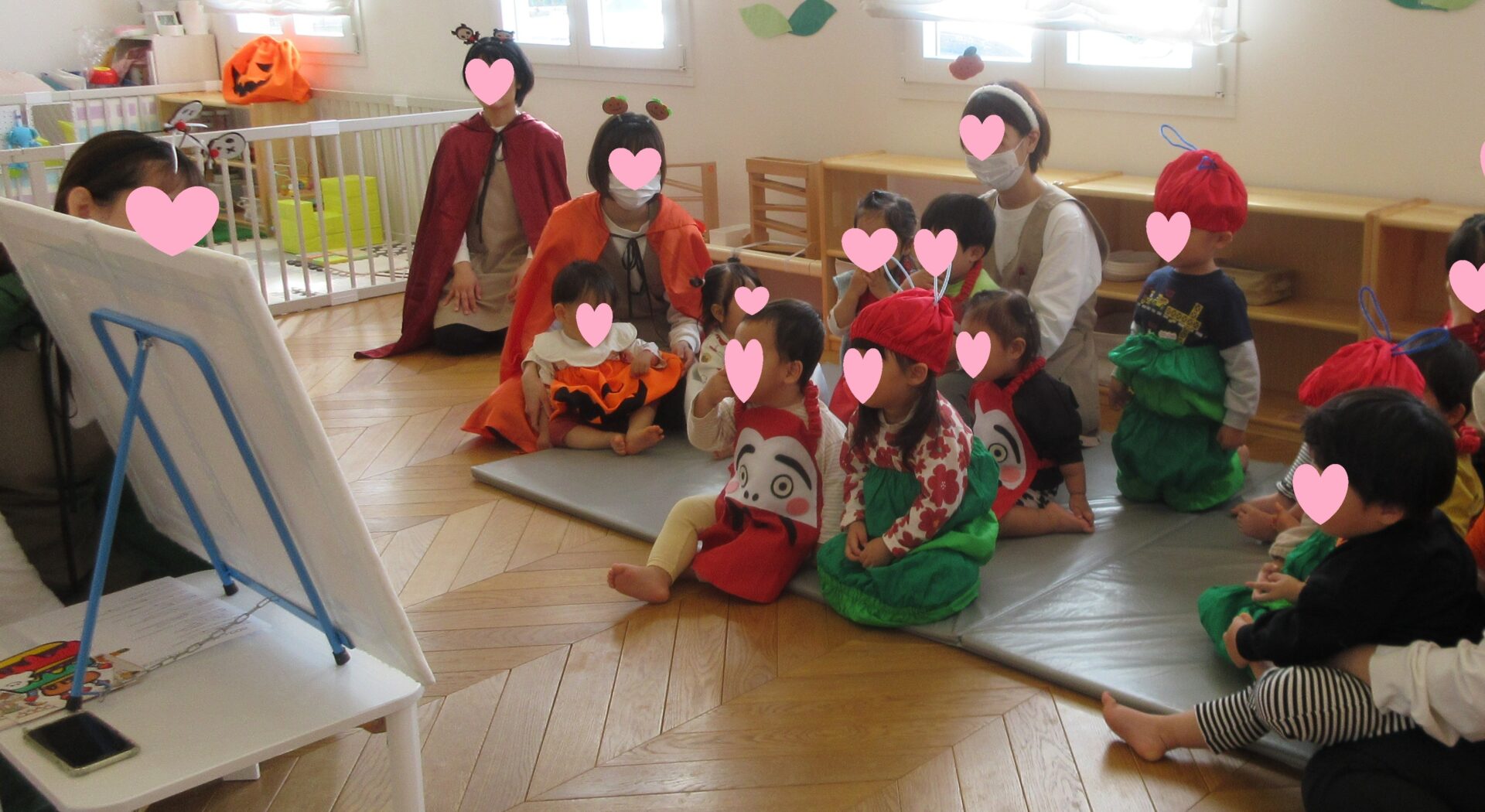 飾りつけられたお部屋に、登園からいつもと少し違う雰囲気を感じて、そわそわしたり、